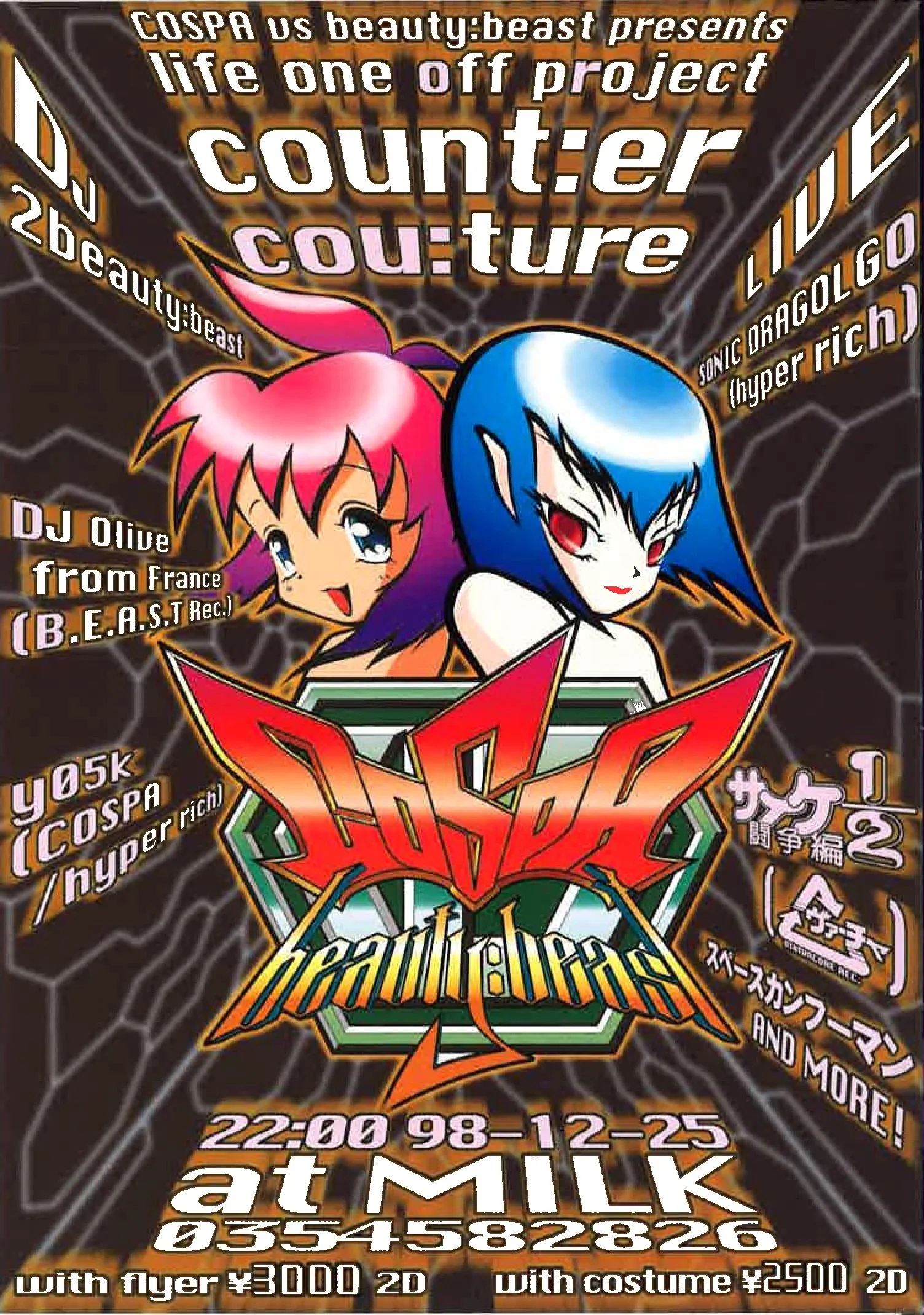 If anyone has added that extra something, it's Yamashita. Beauty: Beast offers a full range of women's and men's clothing, shoes, bags and accessories, as well as product design in everything from furniture to CD players. The label is also involved in film and animation, and has released four original CDs. Beauty: Beast also has an exclusive relationship with Costume Paradise, purveyors of animation and related goods, to work on developing "virtual fashion."