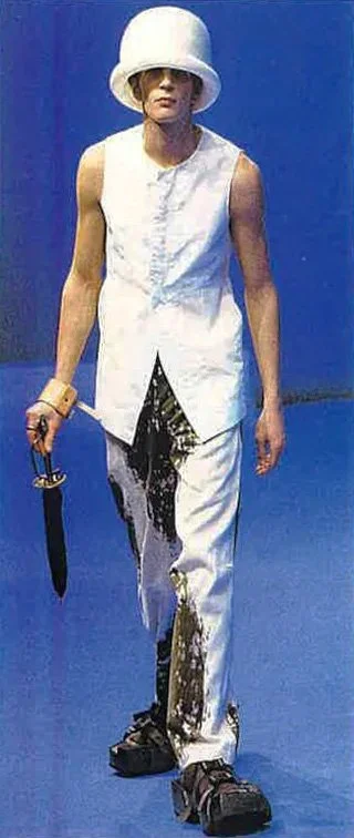 The Dark Knights collection Fall/Winter 98 [sic] was a summary of beauty:beast, a retrospective of where they had been, what they had seen, and as Takao stresses, "what we had known" for all the previous years of experimenting.