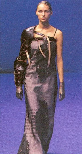 Dark Knights was the first show to illustrate the beauty:beast concept without compromise. The collection theme being based on the connotations of the words "night and knight". The Knight is mythologically a person who fights spiritually the darkness within, a holy warrior. A Dark Night has connotations of evil, of darkness and foreboding. The show was set in the Tokyo Mitsui Club's garden, reminiscent of old romantic Europe. The models emerged from the misty woods entering the garden, centred with an orate fountain, while an orchestra played on the balcony of the Baroque style palace. A lone saxophonist played on the balcony above, emphasising the drama of the collection.