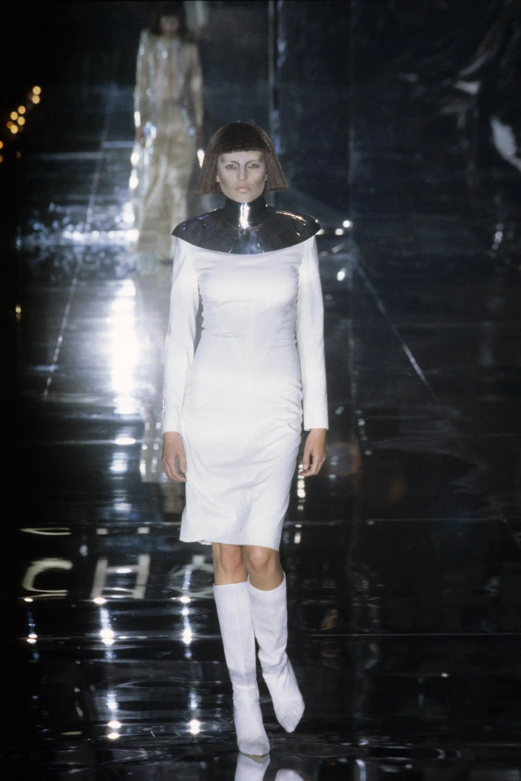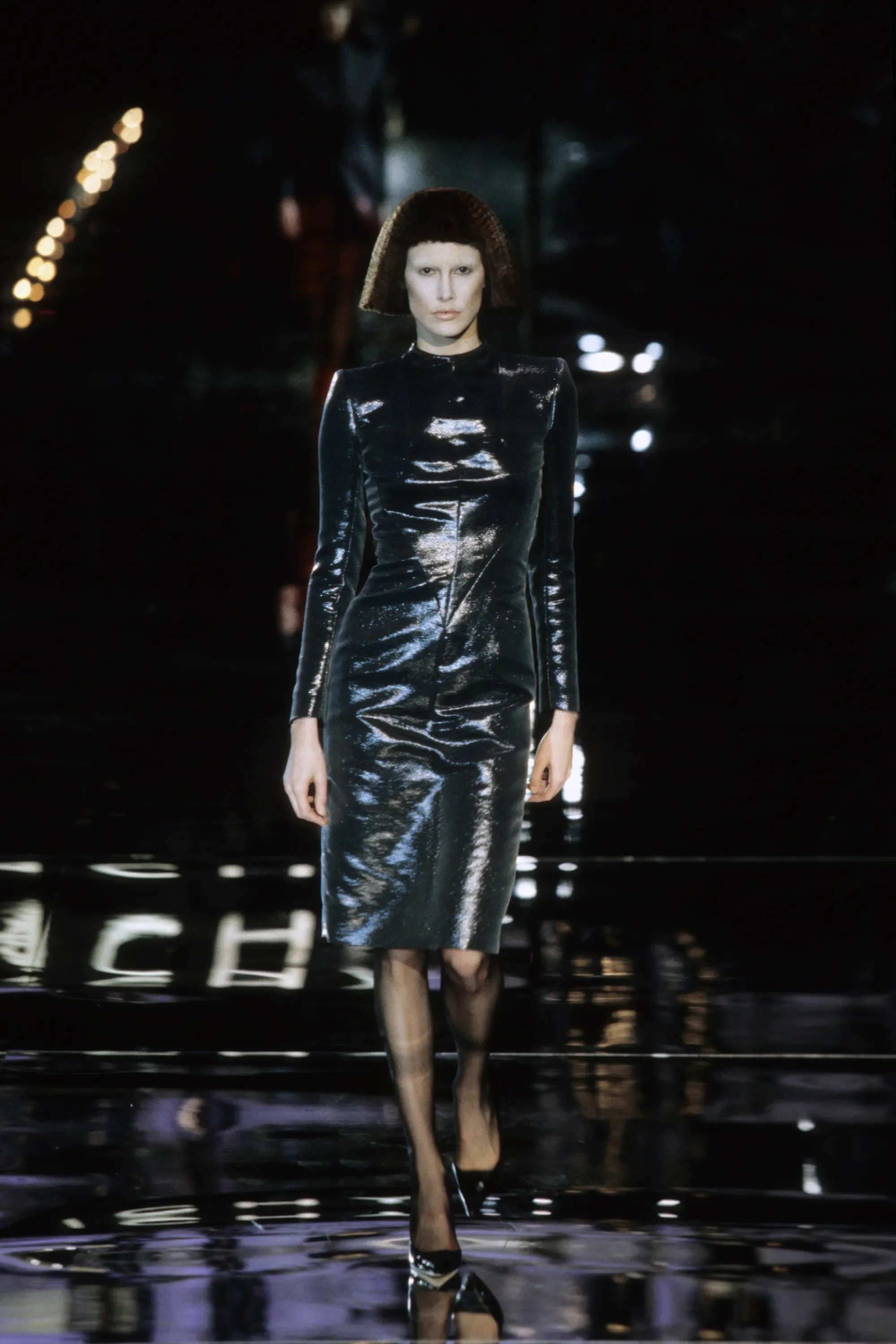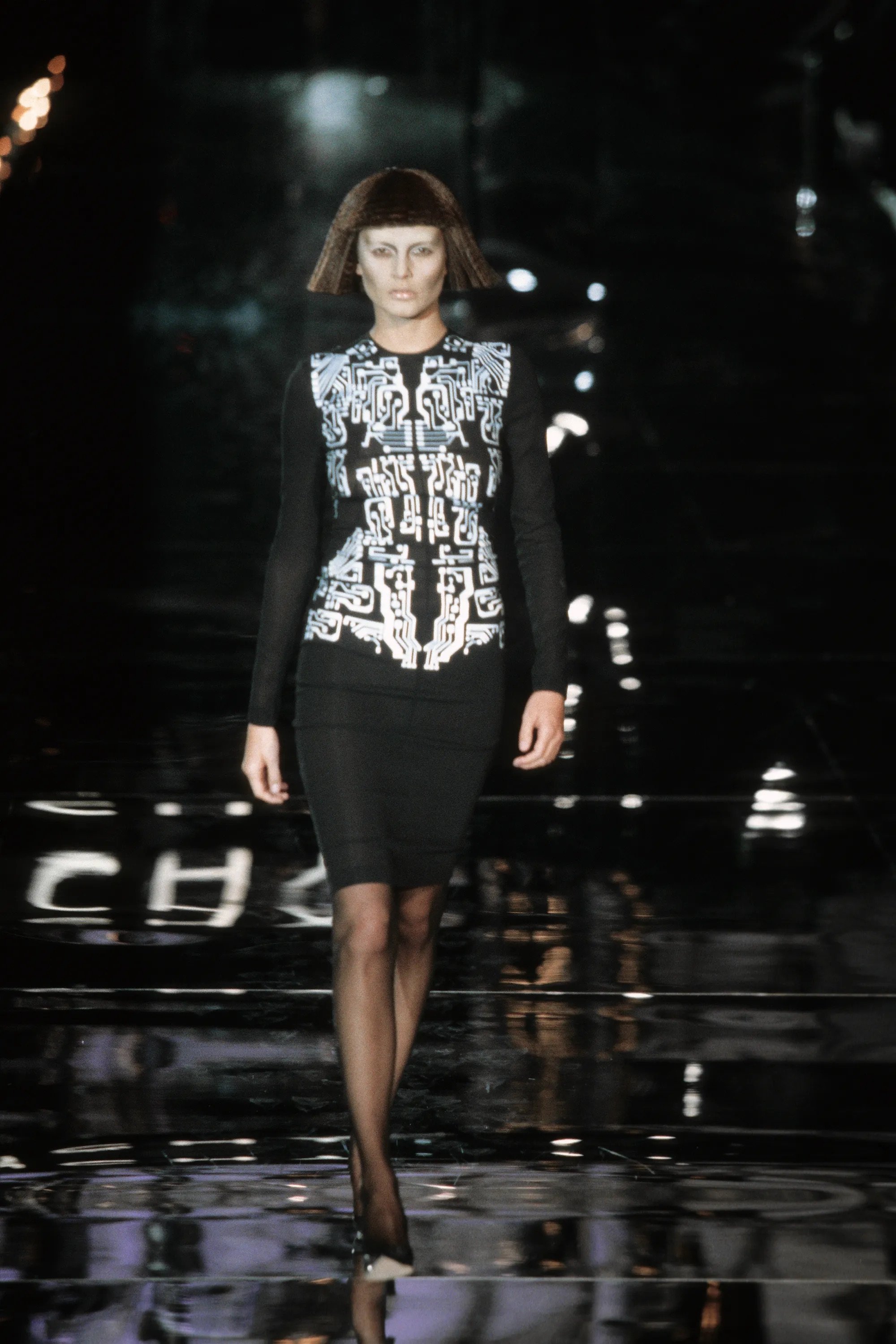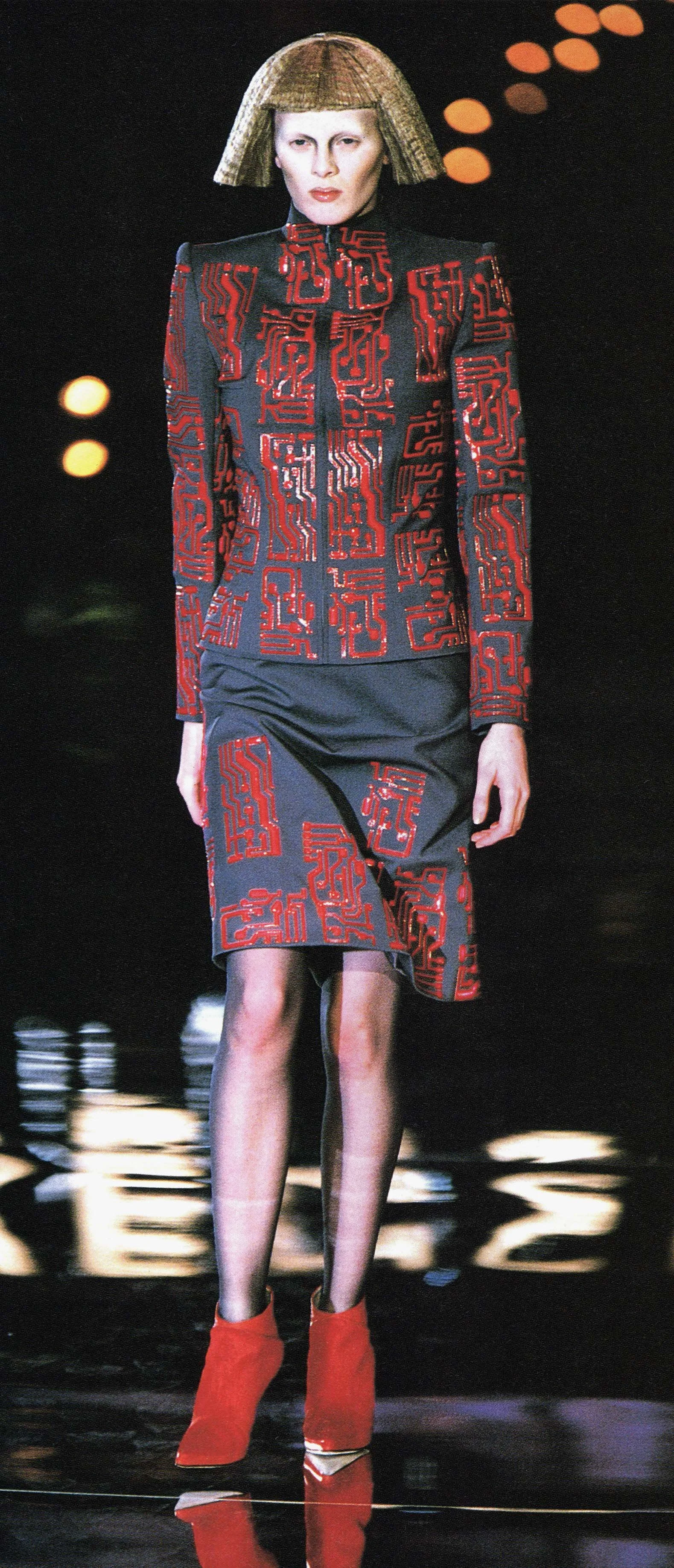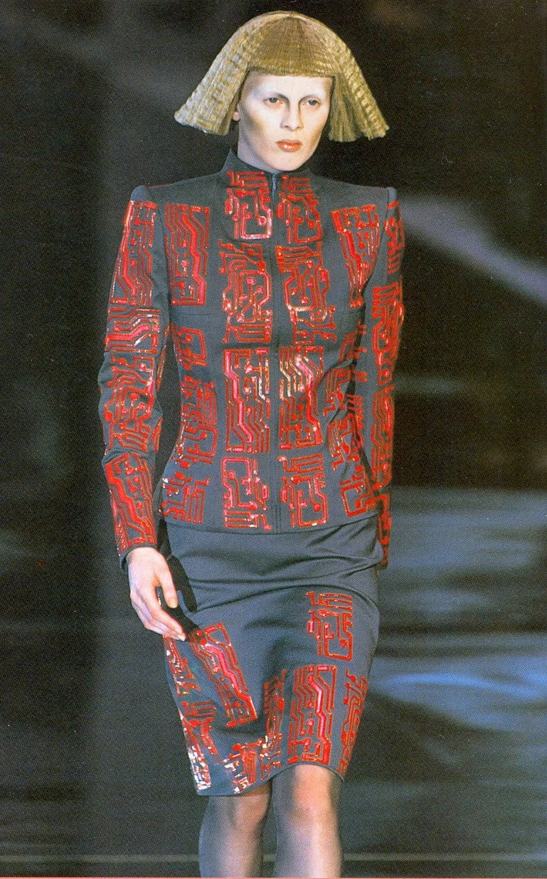 Curiosity, and fear, of the future was very much in the air when Alexander McQueen presented his Fall 1999 fin de siècle collection for Givenchy. Y2K had been generating lots of column inches, as is British “enfant terrible” McQueen, who was shaking up the French house of Givenchy, which for so long was associated with elegance, Audrey Hepburn, and the classic LBD.