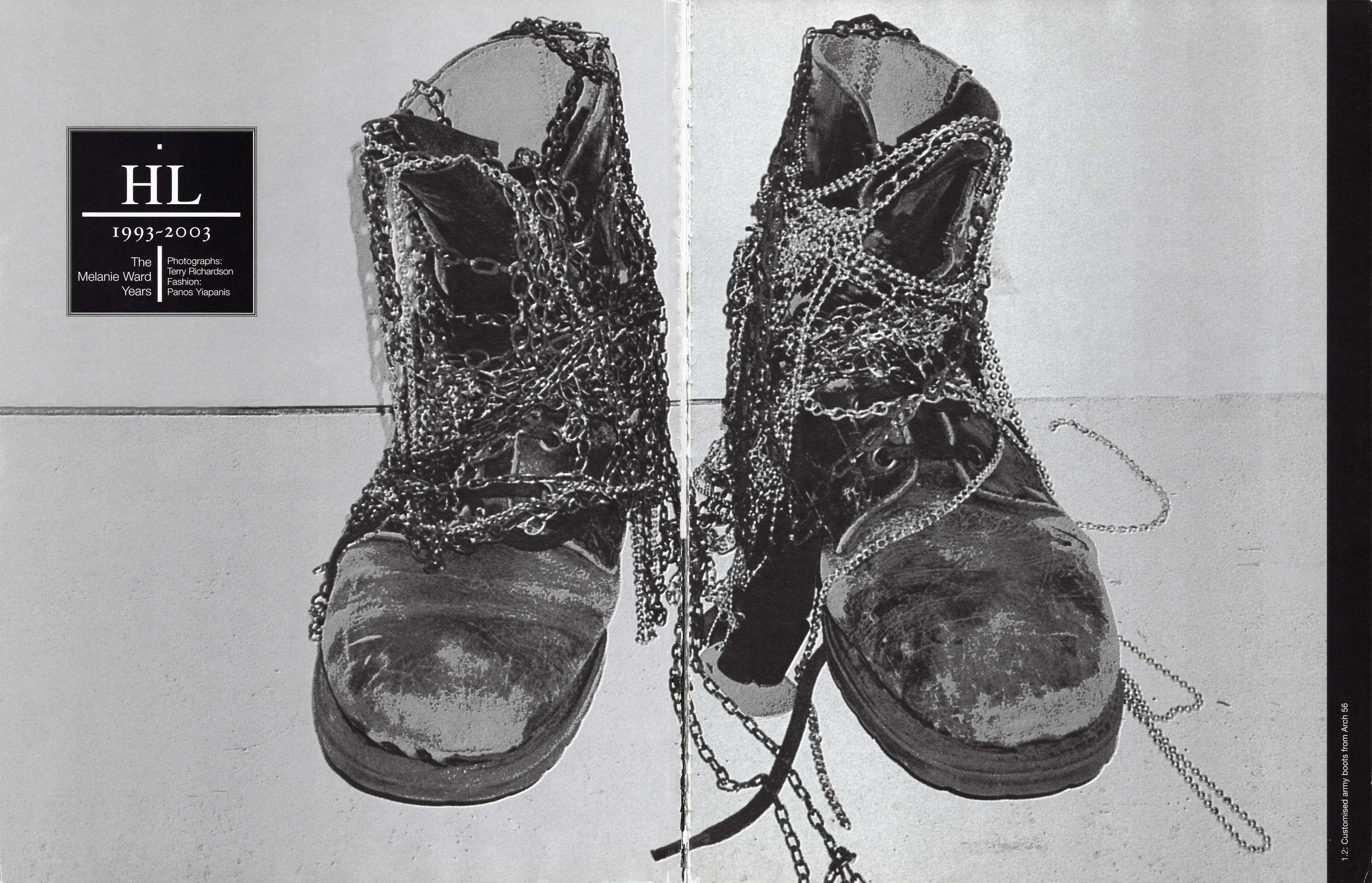 HL: I remember Melanie's work in The Face, i-D and Arena particularly — the pictures of Kate Moss with Corinne Day and the pictures of that guy Ashley that David Sims took too. So I wrote a letter to Melanie telling her I loved her work and would she be interested in working with me. I just looked at these pictures in the magazine and felt something special, that there was something similar here to the way I was thinking. We met up at the Café Flore and that was the start of where we are now. The first show I did with Melanie was the one with Stella in it in ’93, but it must have been two or three years before that that I first started seeing her work.