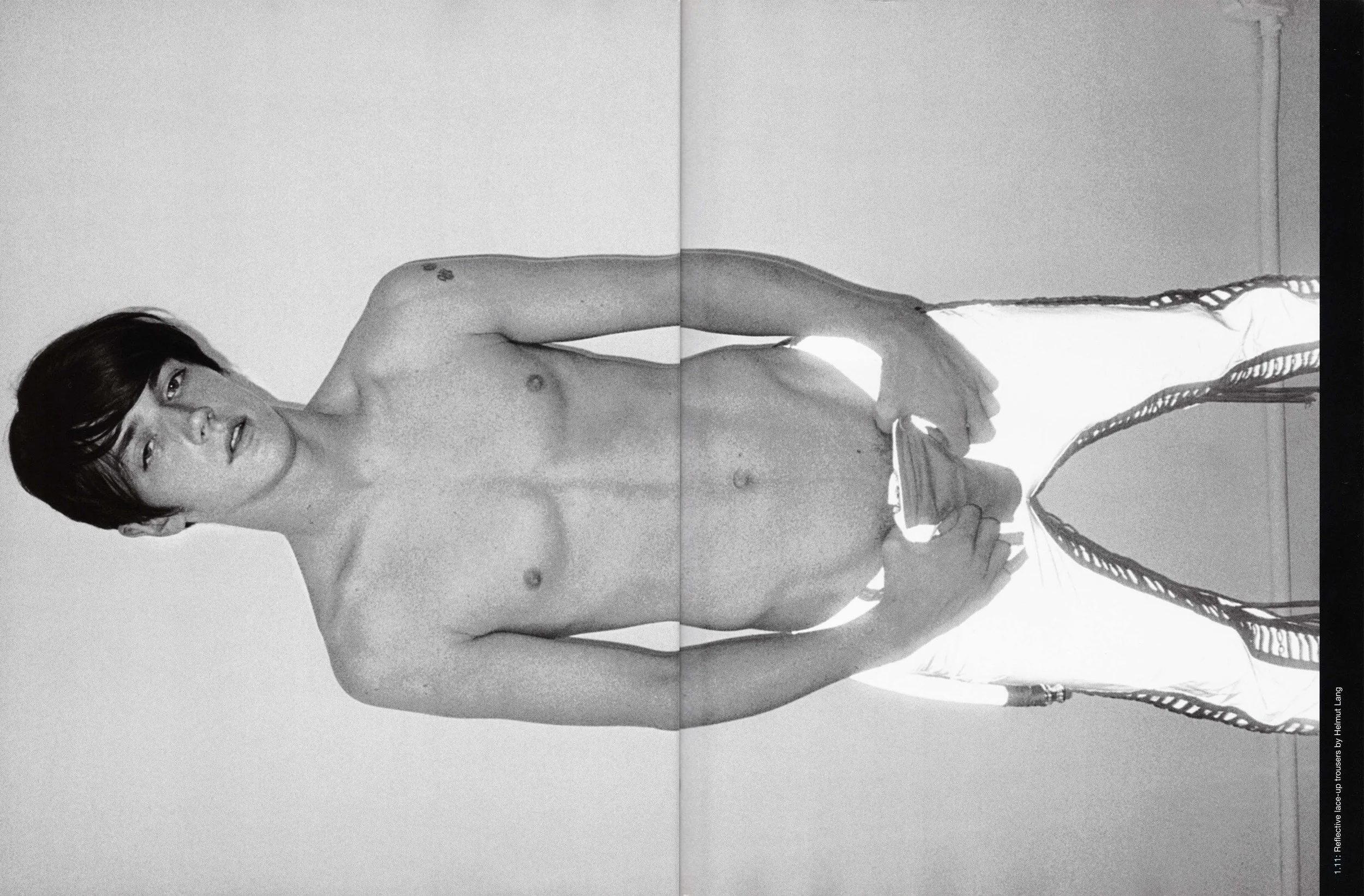 HL: Actually until very recently we did all the casting ourselves with no help. But the last three or four shows we've worked with a casting agent. There's always been a mixture in our casting of both friends — people we just knew who we felt looked right — and also faces I liked from seeing them in magazines like yours. The casting is key to creating your own feeling, so we'd use certain people repeatedly, and a mix of younger guys and also some not so young. At first we had to work really hard to find the right kind of guys. In the late Eighties when I first started there just weren't any cool men out there.