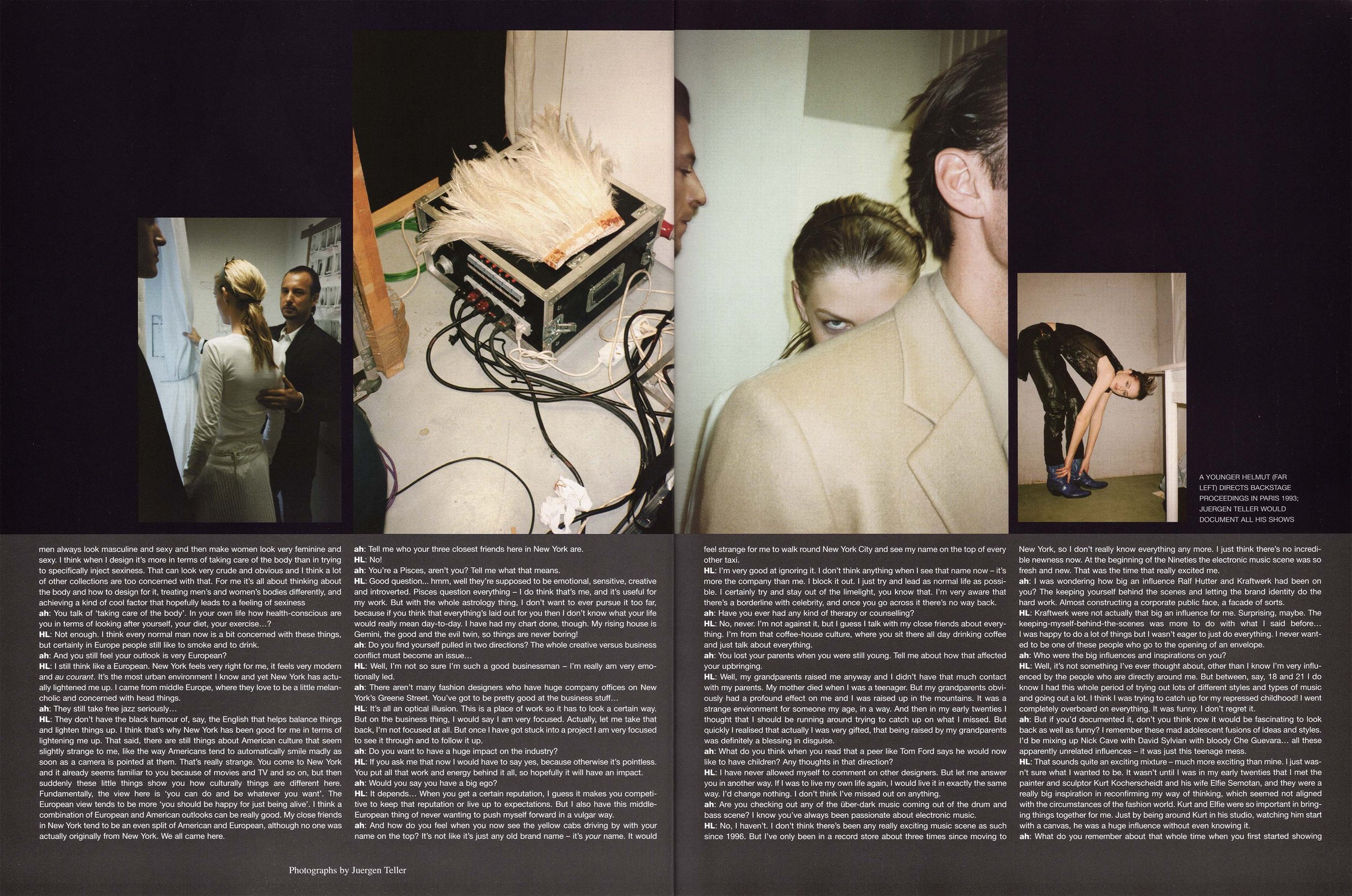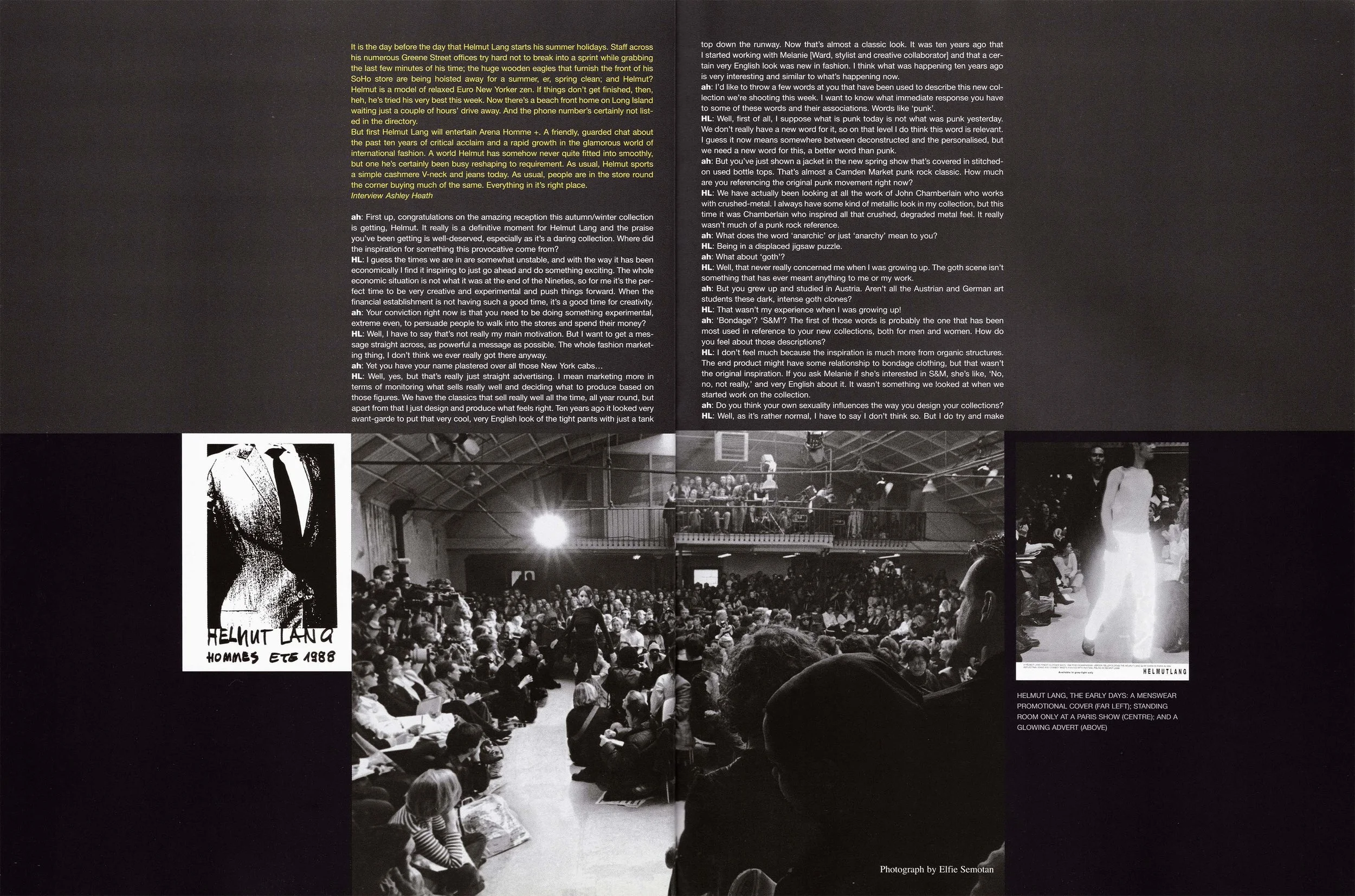 ah: I think you've had a far more revolutionary influence than you've been credited with. The wider public understand how Giorgio Armani and Ralph Lauren have changed the modern world that little bit, but the influence of Helmut Lang is still being unveiled in the mainstream. It's a gradual process, but it is happening now. What do you see as your big immediate goals?
