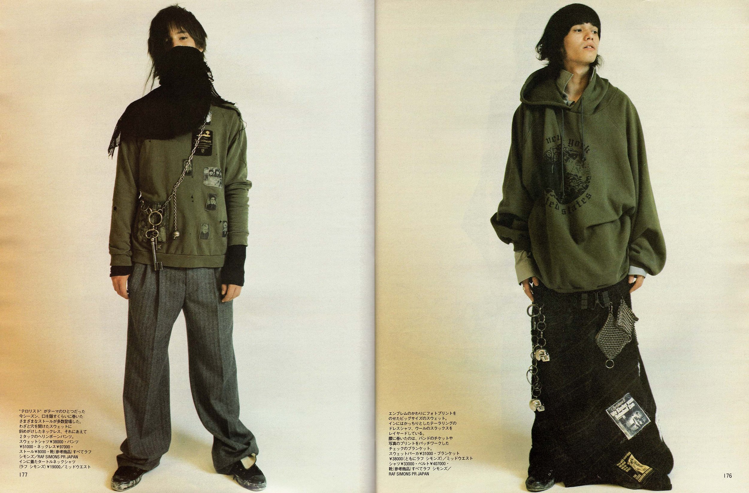 […] Raf Simons is arguably one of the most farsighted designers around. He does, and others follow. But on Saturday night, in a freezing warehouse, Mr. Simons's grim view of urban guerrillas dressed in layers of heavy coats, camouflage jackets and frayed hooded sweatshirts failed to ignite. Descending stairs amid iron scaffolding and a fake mist, the models kept peeling off layers. Yet the gesture revealed nothing.